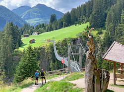 Gemütlich am Jochweg immer entlang des Lechufers bis in den schönen Ort Holzgau, wo die bunt bemalten Häuser das traditionelle Ortsbild prägen. Dort wartet mit der Überquerung einer der längsten und spektakulärsten Fußgängerhängebrücken Europas ein ganz besonderes Highlight auf Sie. Über blühende Wiesen und Waldwege nach Elbigenalp, dem geografischen Zentrum des Lechtals und Hochburg der traditionellen Schnitzkunst.