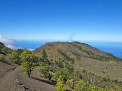 Ein faszinierender Wechsel der Vegetationen: Zunächst umfängt Sie der Baumerika- und Gagelbaumwald, bevor Sie im Kiefernwald zum höchsten Punkt der Insel aufsteigen, um über tiefschwarze Aschefelder an der Abbruchkante des Golftales wieder in den duftenden Kiefernwald einzutreten. Bei Fernsicht zeichnet sich La Palma am Horizont ab.